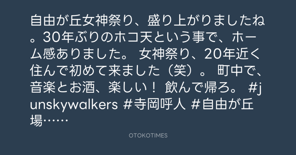 自由が丘女神祭り、盛り上がりましたね。30年ぶりのホコ天という事で、ホーム感あ... -