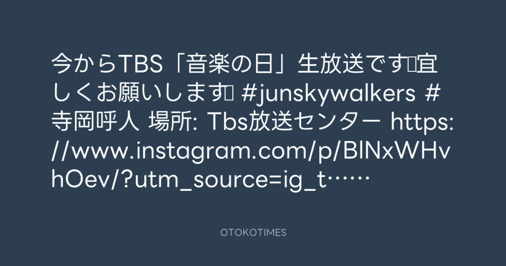 今からTBS「音楽の日」生放送です♫宜しくお願いします♫ #junskywalkers #寺岡呼人 ...
