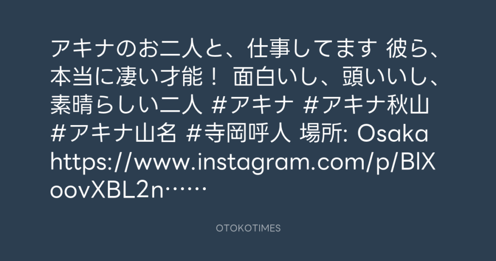 アキナのお二人と、仕事してます😊 彼ら、本当に凄い才能! 面白いし、頭いいし、... -