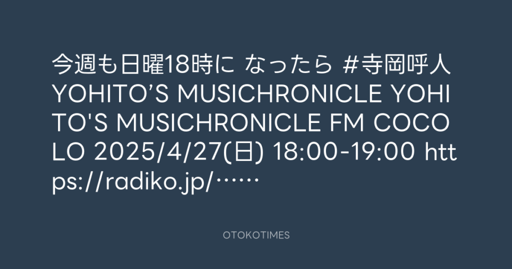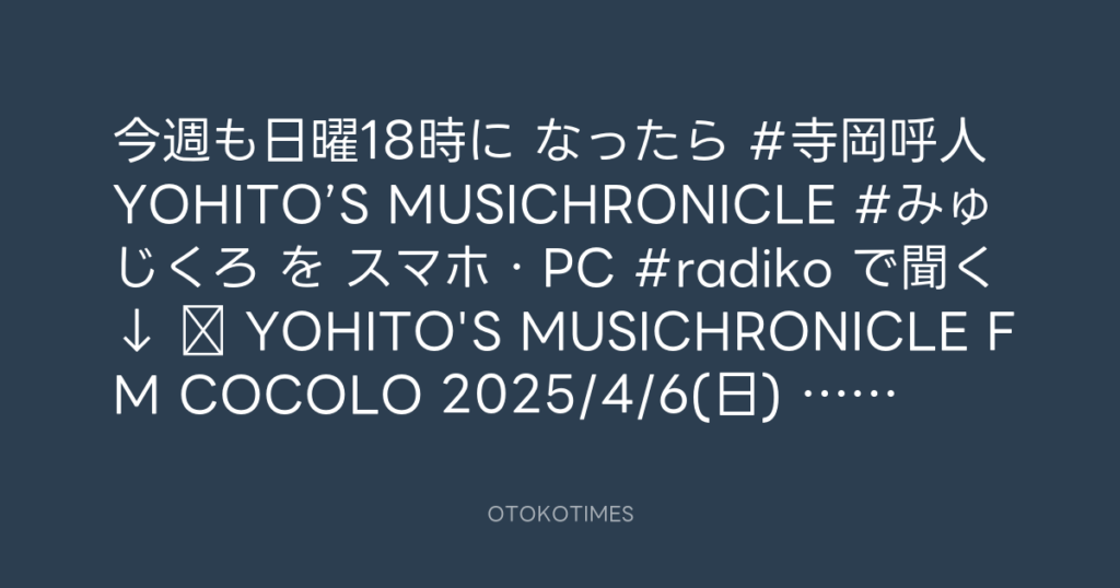 今週も日曜18時に なったら #寺岡呼人 YOHITO’S MUSICHRONICLE #みゅじくろ を ... -