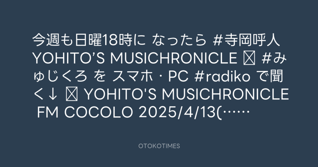今週も日曜18時に なったら #寺岡呼人 YOHITO’S MUSICHRONICLE #みゅじくろ を ス... -