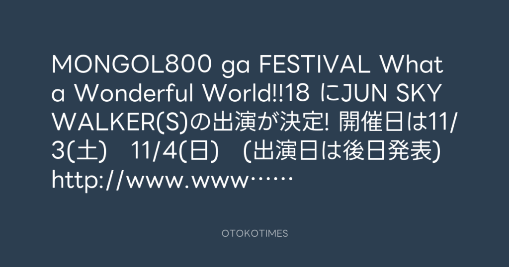 MONGOL800 ga FESTIVAL What a Wonderful World!!18 にJUN SKY WALKER(S)の出演が... -