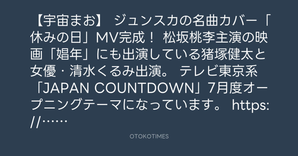 【宇宙まお】 ジュンスカの名曲カバー「休みの日」MV完成! 松坂桃李主演の映画「... -