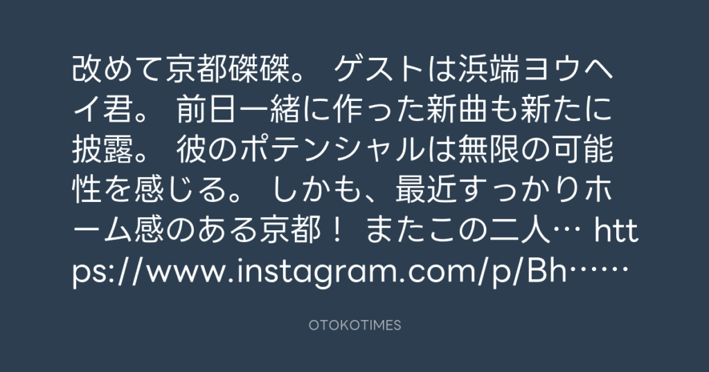 寺岡 呼人 @yohitoteraoka – 00:05・2018年4月13日(IG post)