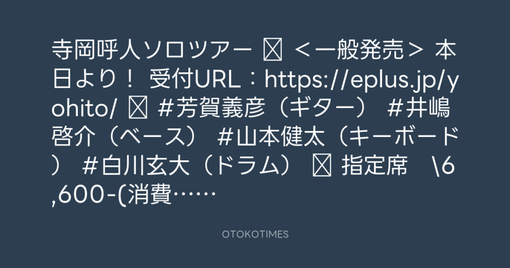 寺岡呼人ソロツアー <一般発売> 本日より! 受付URL:https://eplus.jp/yohito... -