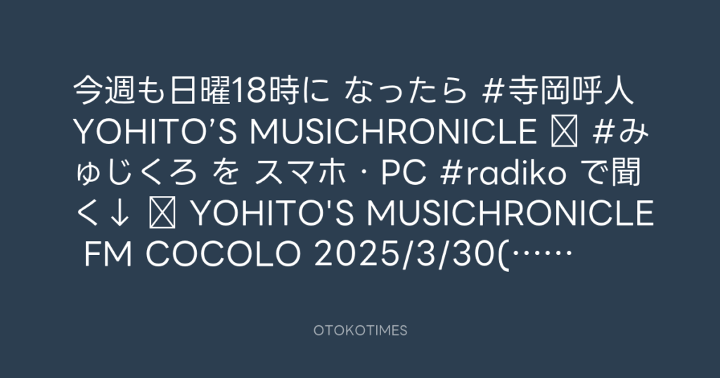 今週も日曜18時に なったら #寺岡呼人 YOHITO’S MUSICHRONICLE #みゅじくろ を ... -