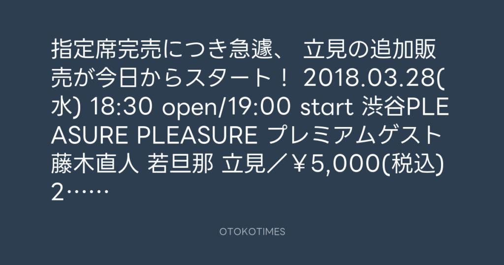 指定席完売につき急遽、 立見の追加販売が決定致しました! 3.28渋谷プレジャープ...