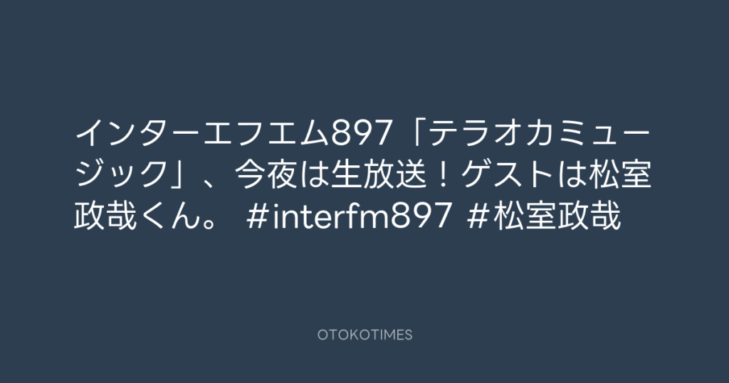 インターエフエム897「テラオカミュージック」、今夜は生放送!ゲストは松室政哉く... -
