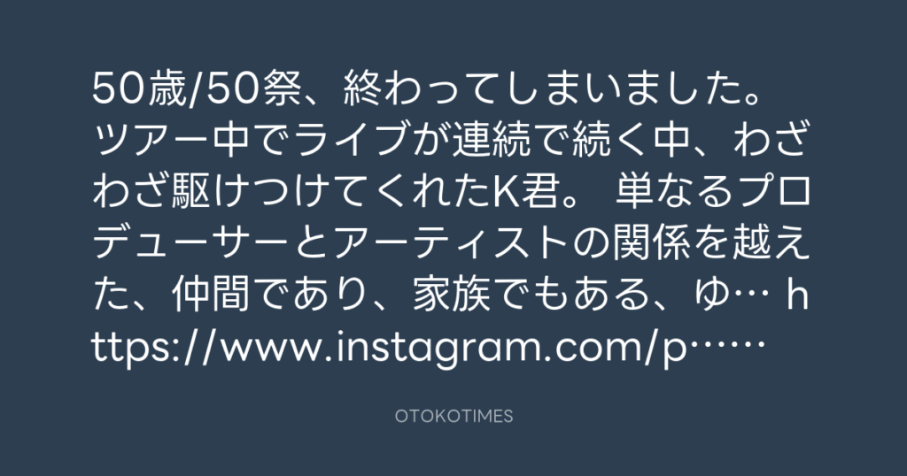 50歳/50祭、終わってしまいました。 ツアー中でライブが連続で続く中、わざわざ... -