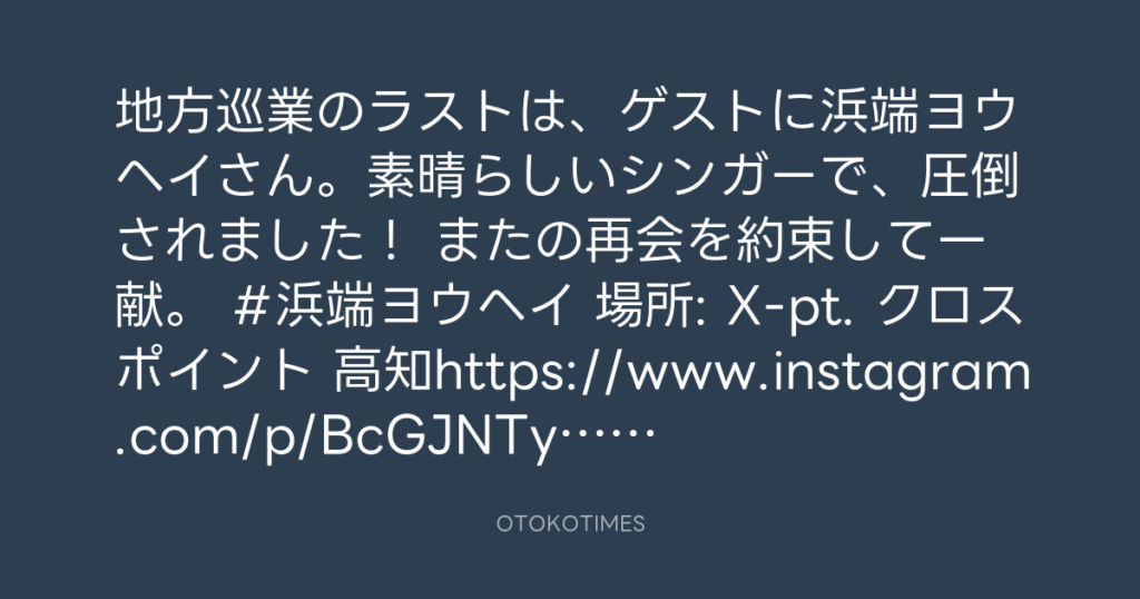 地方巡業のラストは、ゲストに浜端ヨウヘイさん。素晴らしいシンガーで、圧倒され...