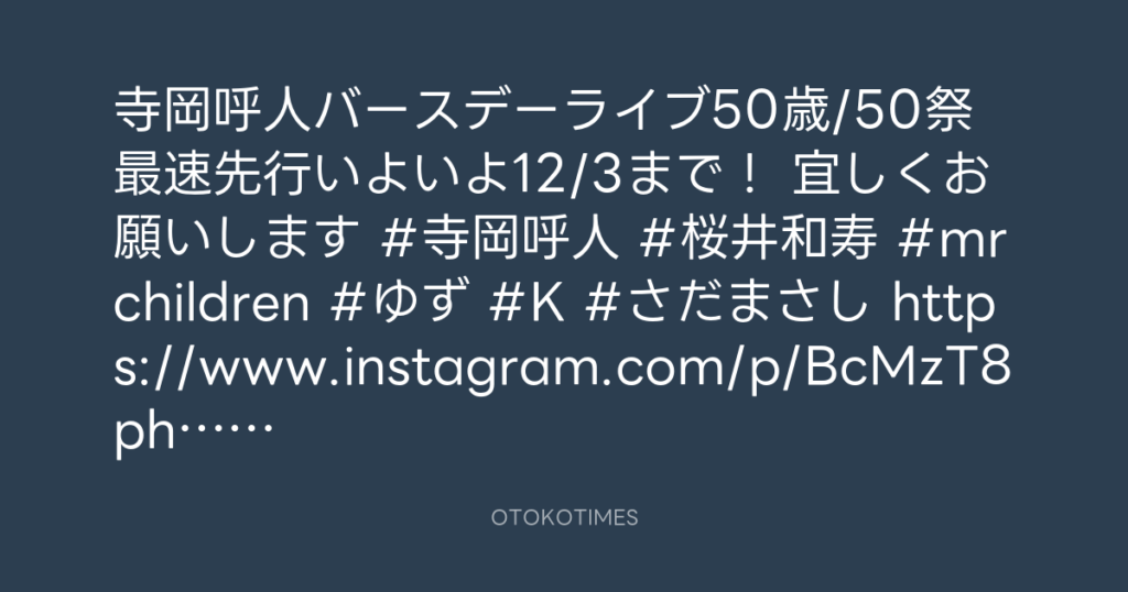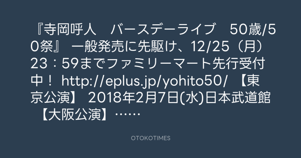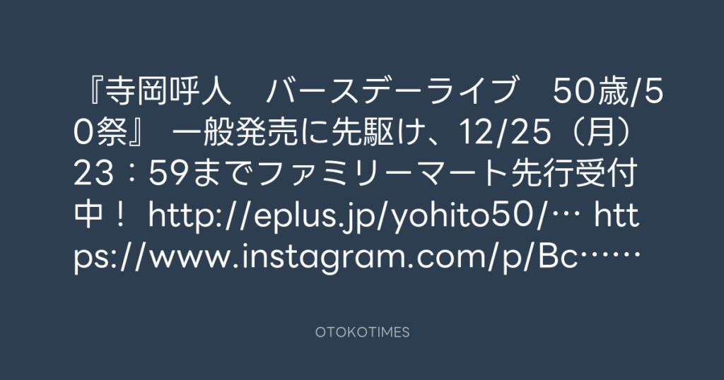 寺岡呼人バースデーライブ50歳/50祭 最速先行いよいよ12/3まで! 宜しくお願いしま... -