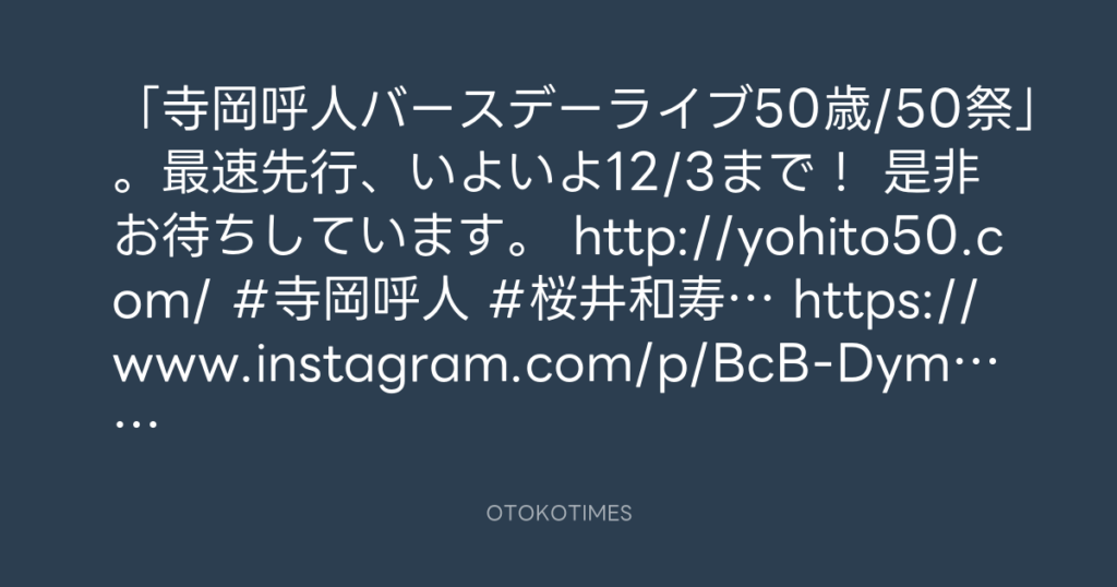 「寺岡呼人バースデーライブ50歳/50祭」。最速先行、いよいよ12/3まで! 是非お待... -