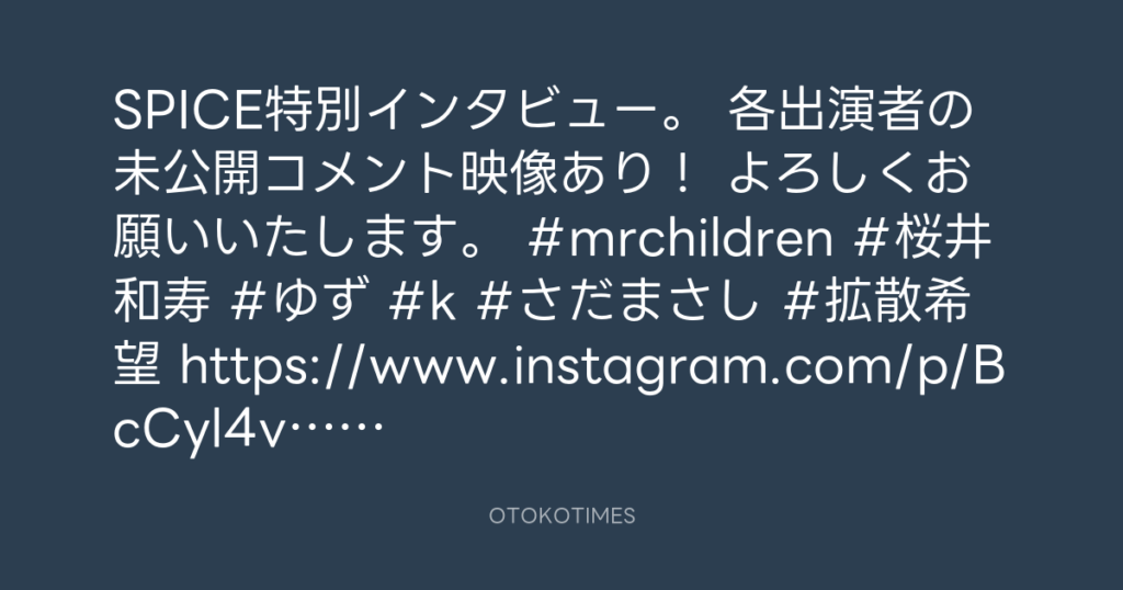 @spice_topics 「寺岡呼人バースデーライブ50歳/50祭」桜井和寿 https://www.youtu... -