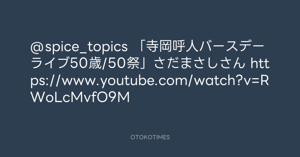 @spice_topics 「寺岡呼人バースデーライブ50歳/50祭」K君 https://www.youtube.co... -