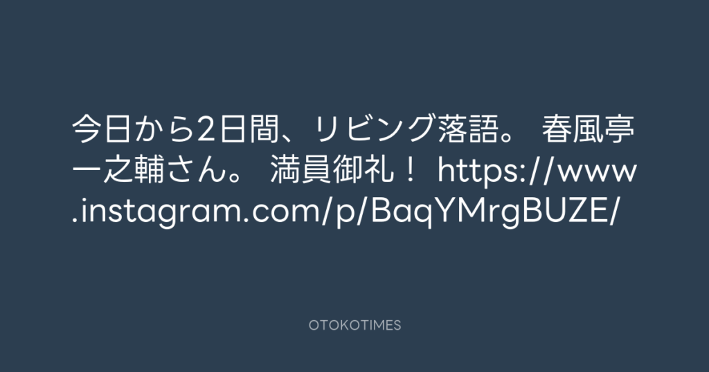 今日から2日間、リビング落語。 春風亭一之輔さん。 満員御礼! https://www.insta... -