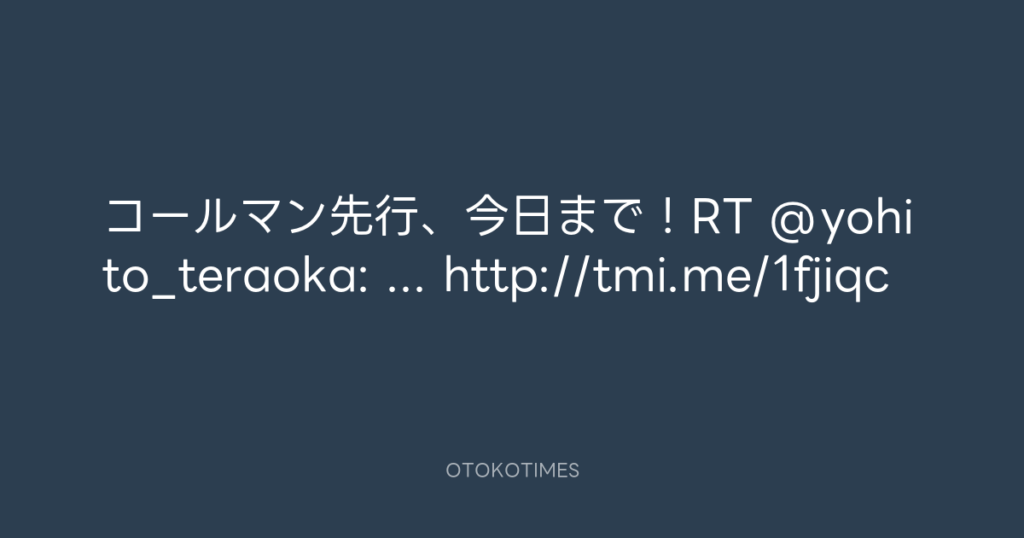 コールマン先行、今日まで!RT @yohito_teraoka: ... http://tmi.me/1fjiqc -