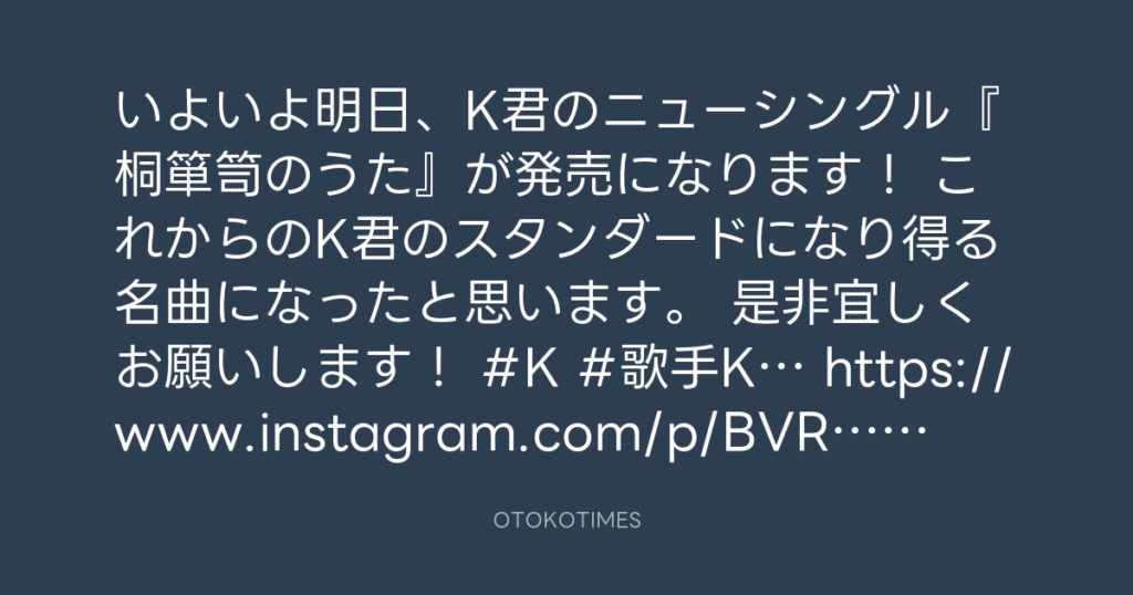 いよいよ明日、K君のニューシングル『桐箪笥のうた』が発売になります! これから... -