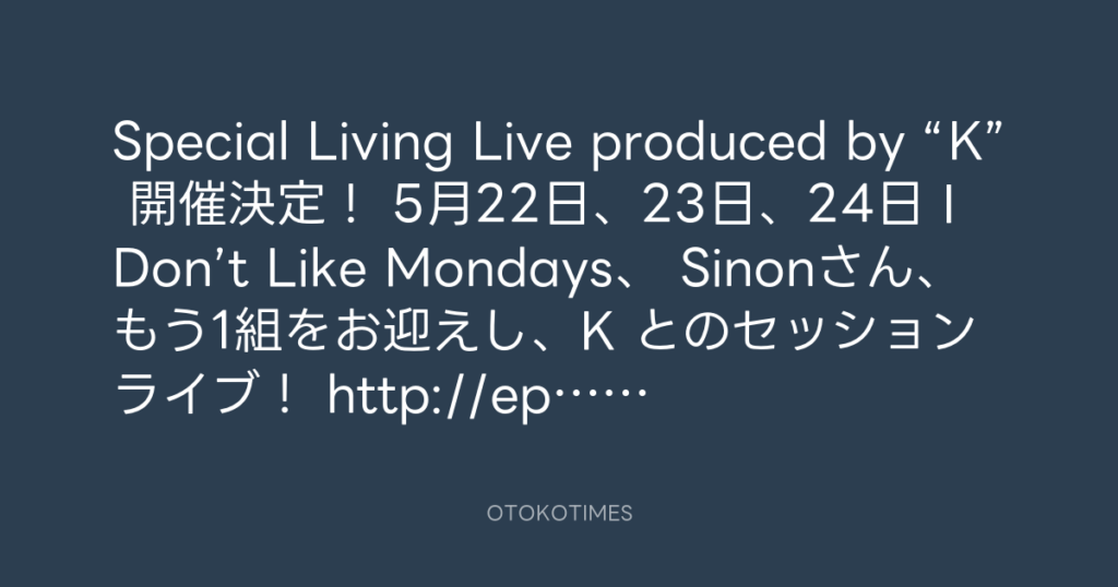 Special Living Live produced by “K” 開催決定! 5月22日、23日、24日 I Don’t Li... -