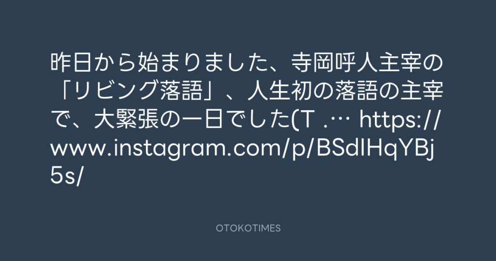 寺岡 呼人 @yohitoteraoka – 15:48・2017年4月16日(IG post)