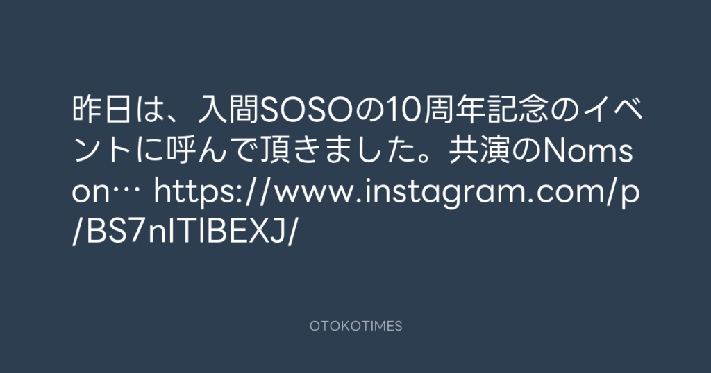 昨日は、入間SOSOの10周年記念のイベントに呼んで頂きました。共演のNomson… https... -