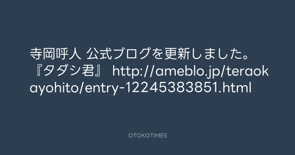 寺岡呼人 公式ブログを更新しました。 『タダシ君』 http://ameblo.jp/teraokayohi... -