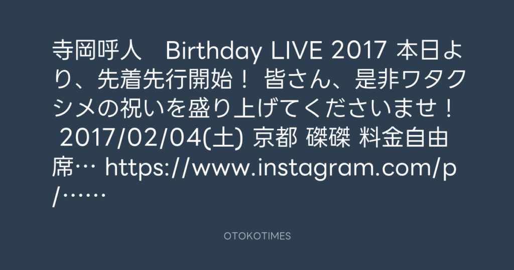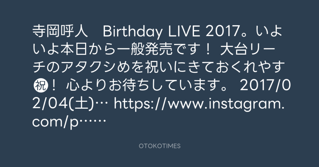 寺岡呼人 Birthday LIVE 2017。いよいよ本日から一般発売です! 大台リーチのアタ... -