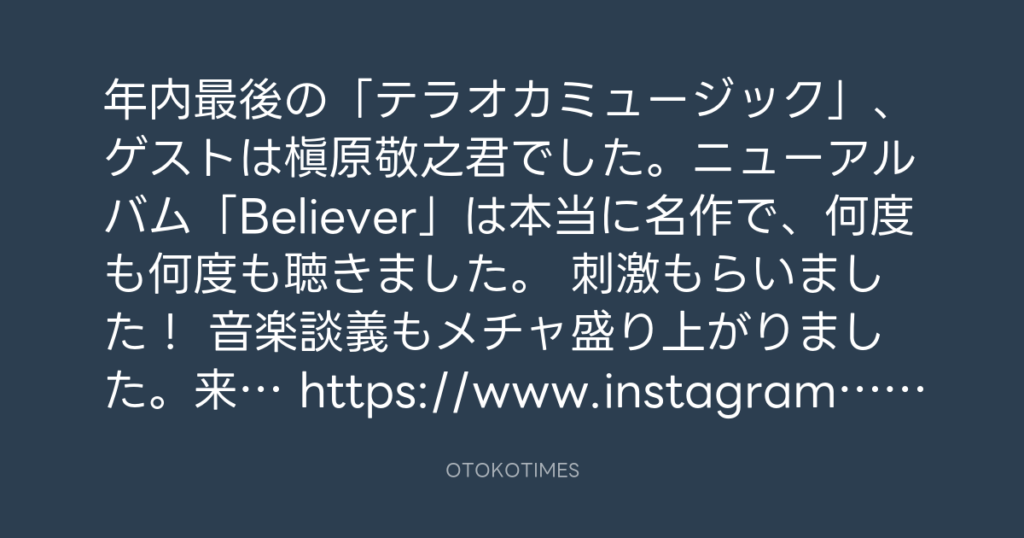 年内最後の「テラオカミュージック」、ゲストは槇原敬之君でした。ニューアルバム... -