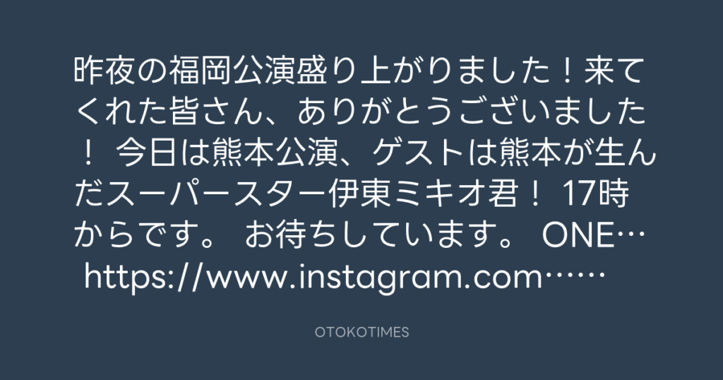 昨夜の福岡公演盛り上がりました!来てくれた皆さん、ありがとうございました! 今...