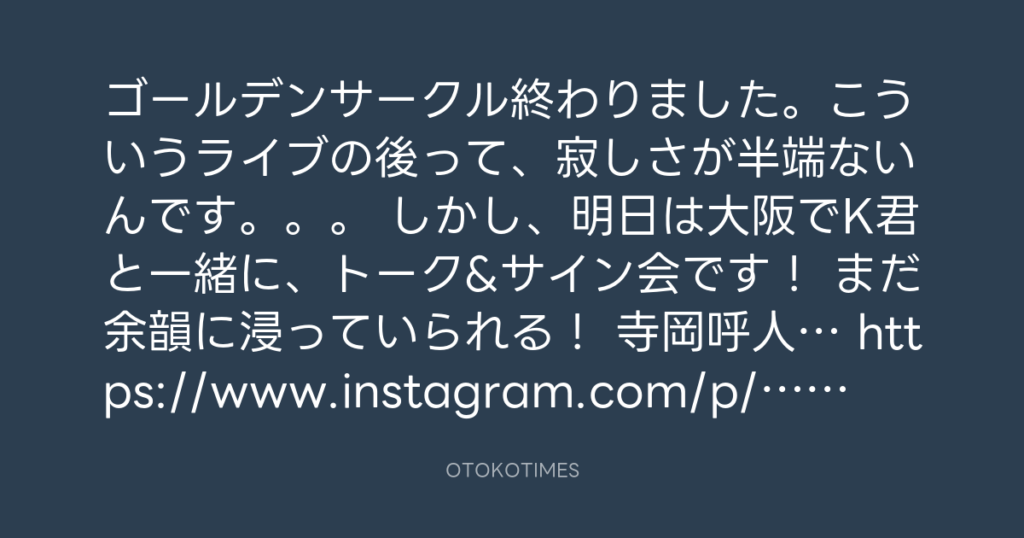 寺岡 呼人 @yohitoteraoka – 20:15・2016年8月3日(IG post)