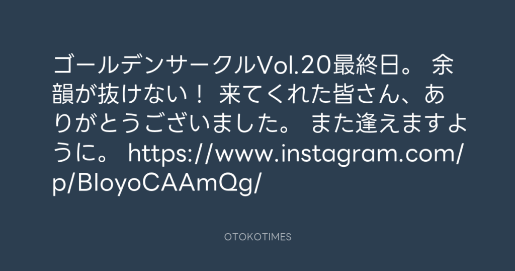 ゴールデンサークルVol.20最終日。 余韻が抜けない! 来てくれた皆さん、ありがと... -