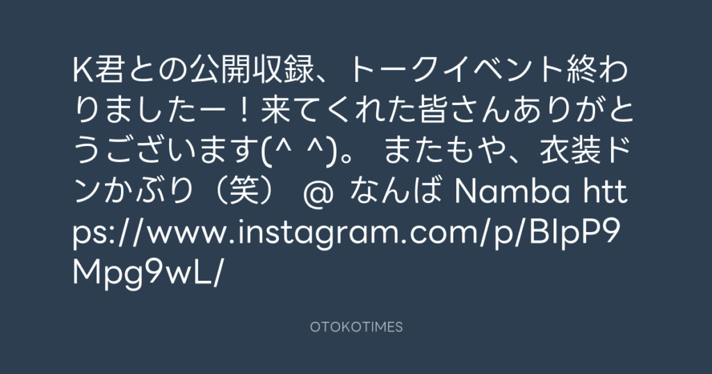 K君との公開収録、トークイベント終わりましたー!来てくれた皆さんありがとうござ... -