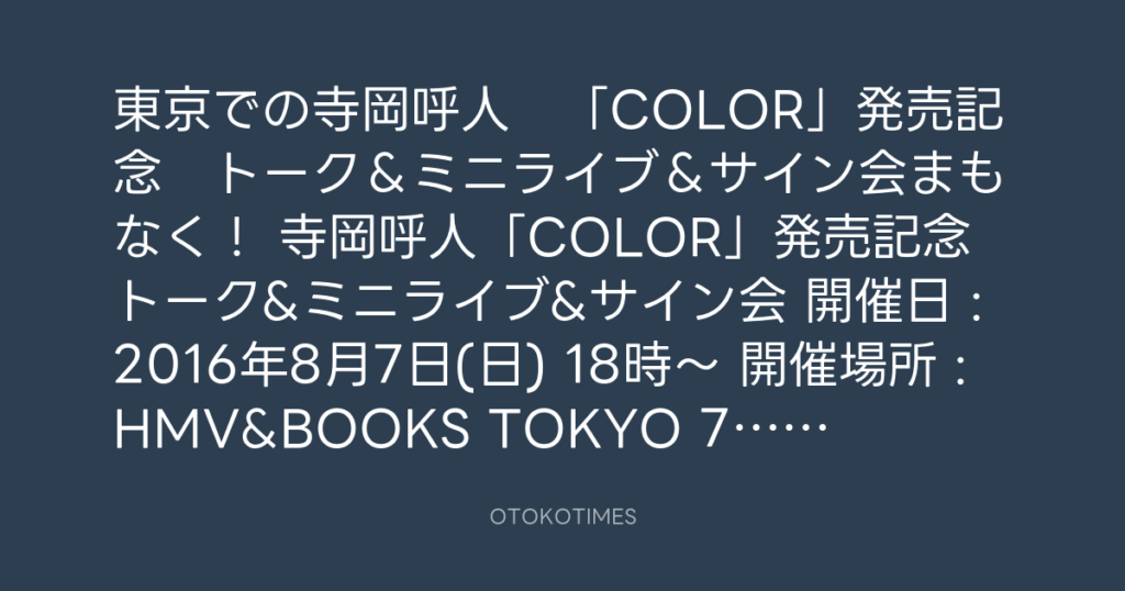 東京での寺岡呼人 「COLOR」発売記念 トーク&ミニライブ&サイン会まもなく!... -