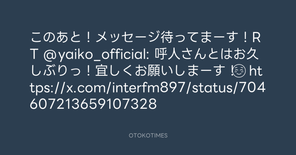 このあと!メッセージ待ってまーす!RT @yaiko_official: 呼人さんとはお久しぶり... -