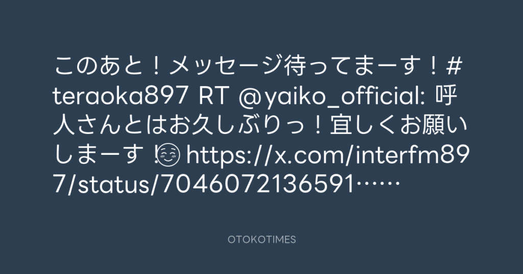 このあと!メッセージ待ってまーす!#teraoka897 RT @yaiko_official: 呼人さんと... -