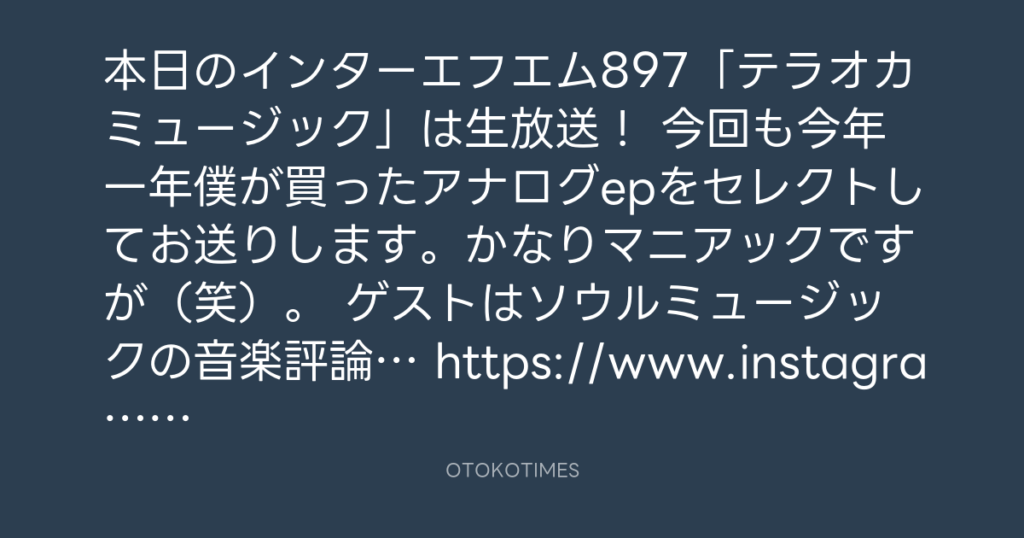 本日のインターエフエム897「テラオカミュージック」は生放送! 今回も今年一年僕... -