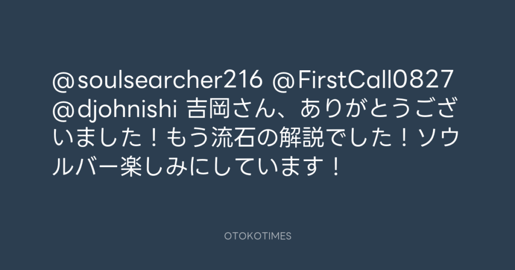 @soulsearcher216 @FirstCall0827 @djohnishi 吉岡さん、ありがとうございました!... -