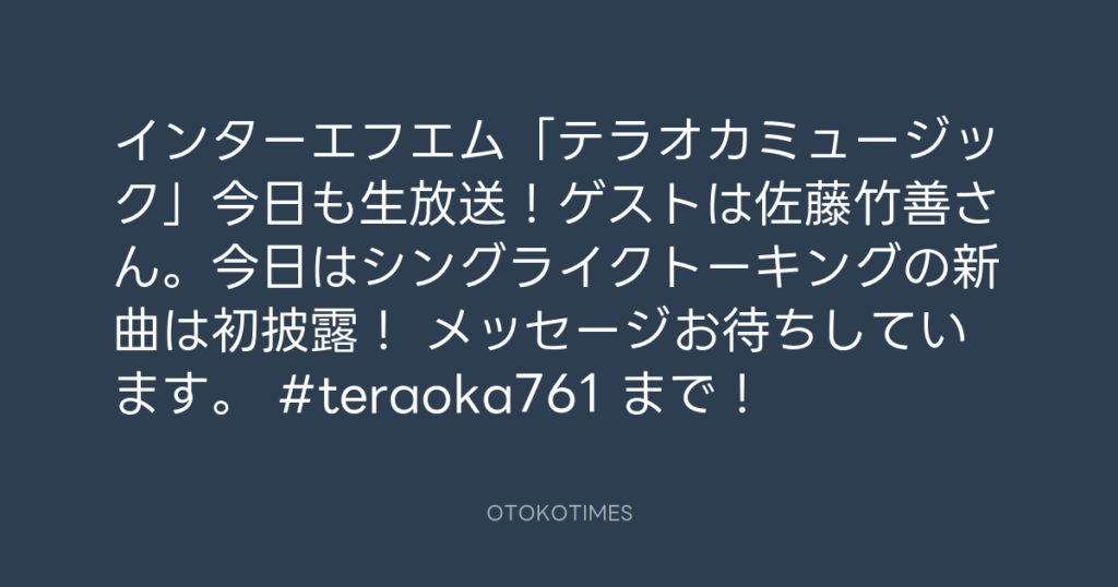 インターエフエム「テラオカミュージック」今日も生放送!ゲストは佐藤竹善さん。... -