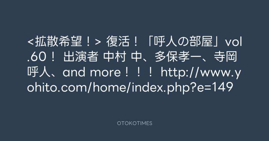 <拡散希望!> 復活!「呼人の部屋」vol.60! 出演者 中村 中、多保孝一、寺... -