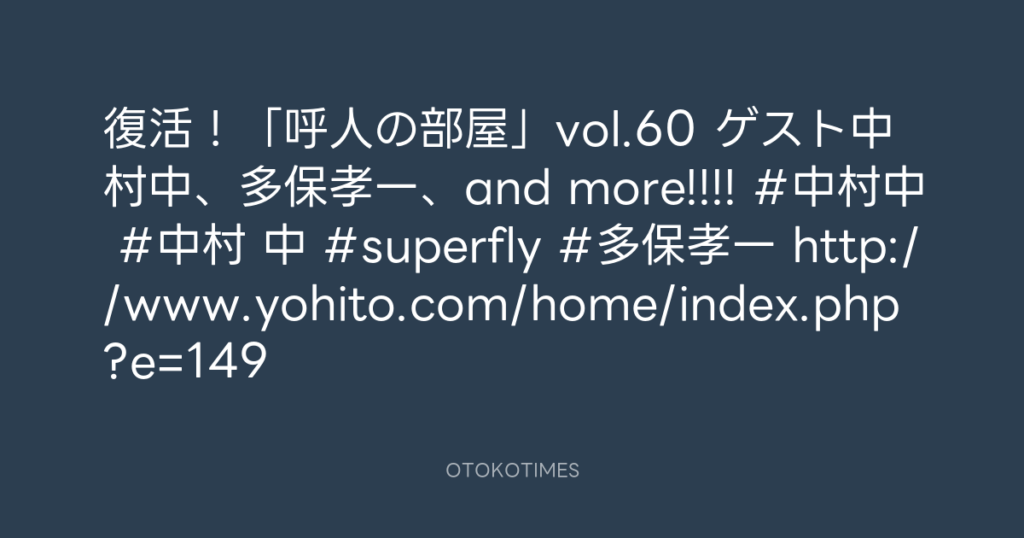 復活!「呼人の部屋」vol.60 ゲスト中村中、多保孝一、and more!!!! #中村中 #中村... -