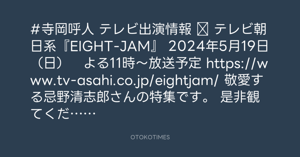 #寺岡呼人 テレビ出演情報 テレビ朝日系『EIGHT-JAM』 2024年5月19日(日) よ... -