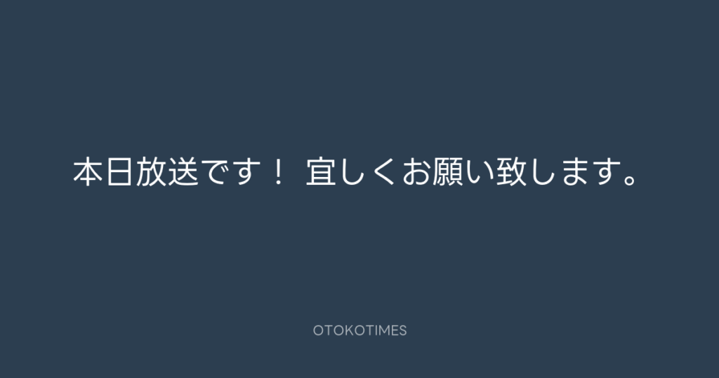本日放送です! 宜しくお願い致します。 -
