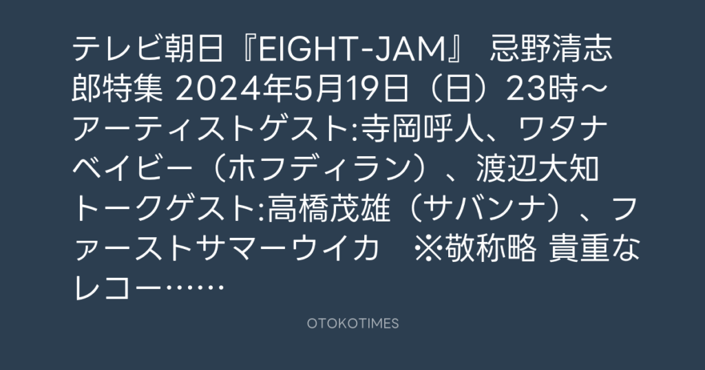 📺テレビ朝日『EIGHT-JAM』📺 🎉忌野清志郎特集🎉 🕚2024年5月19日(日)23時~ ア... -