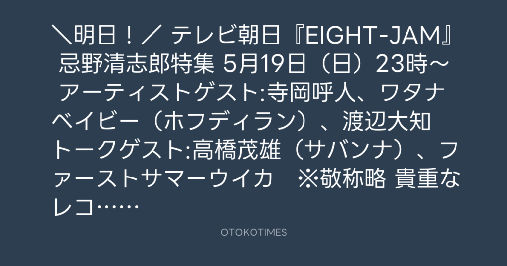 \明日!/ 📺テレビ朝日『EIGHT-JAM』 🎉忌野清志郎特集 🕚5月19日(日)23時~ ... -