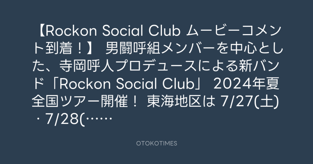【Rockon Social Club ムービーコメント到着!】 男闘呼組メンバーを中心とした、... -