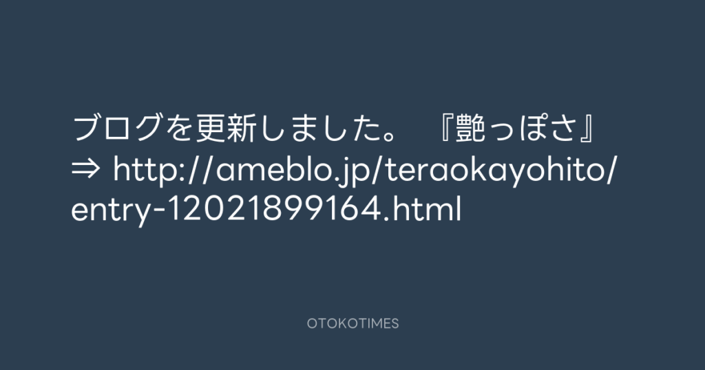 ブログを更新しました。 『艶っぽさ』 ⇒ http://ameblo.jp/teraokayohito/entry-12... -