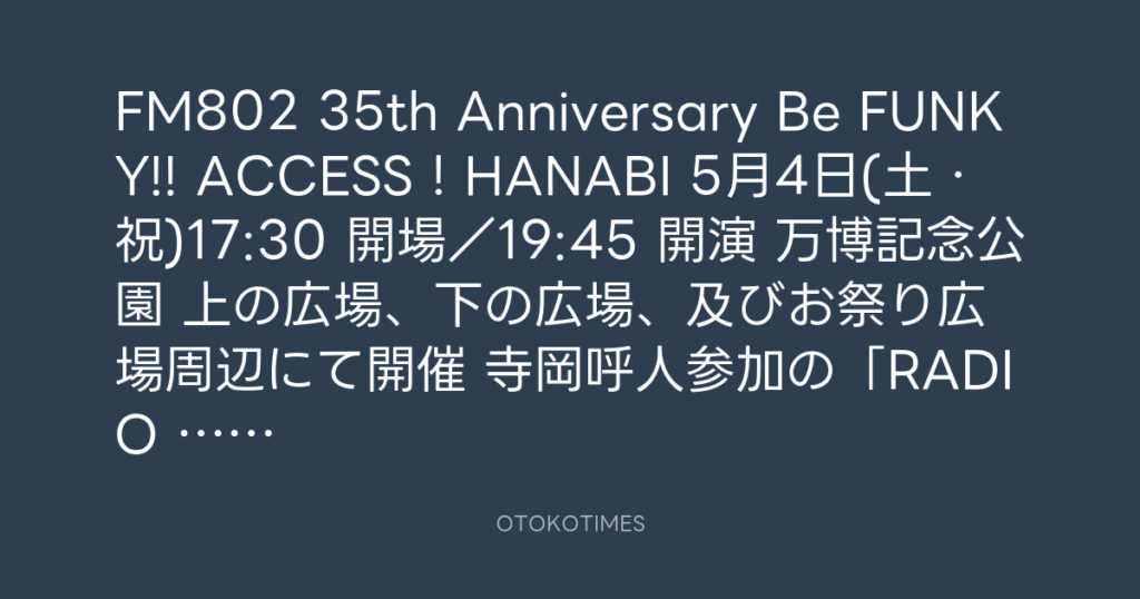 FM802 35th Anniversary Be FUNKY!! ACCESS!HANABI 5月4日(土・祝)17:30 開場/19... -