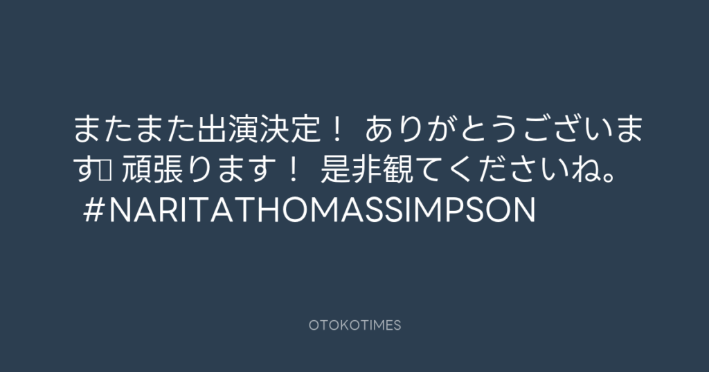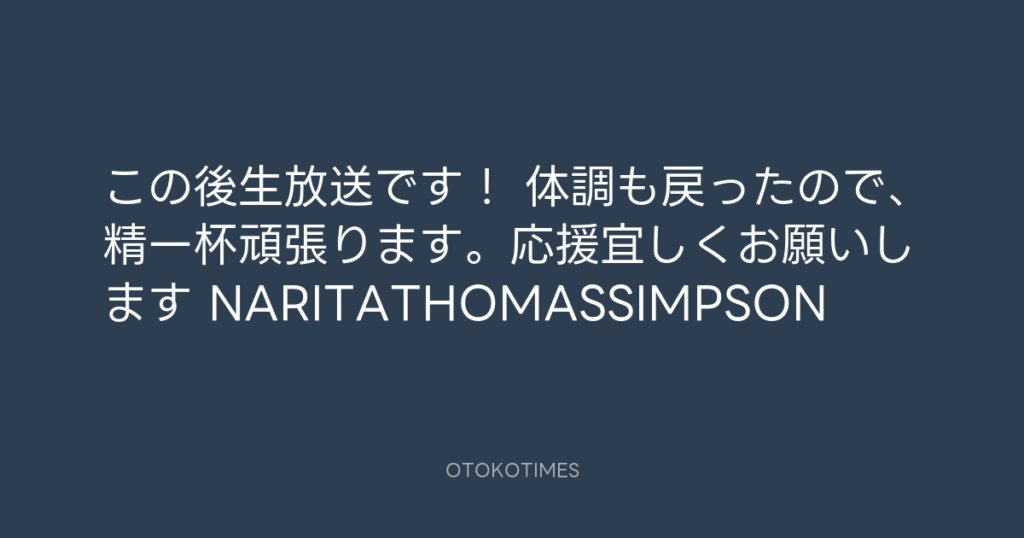 この後、21時からから! #NARITATHOMASSIMPSON