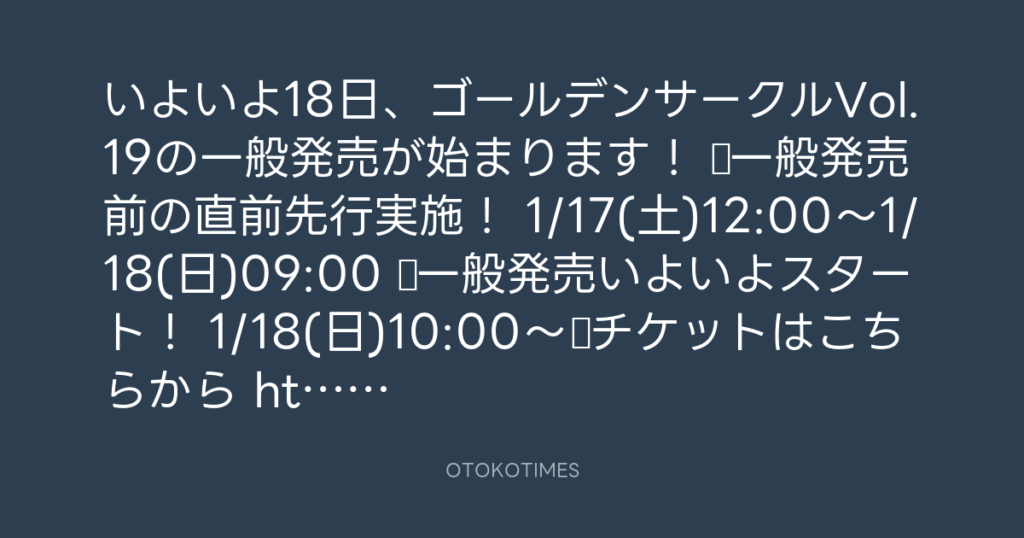 いよいよ18日、ゴールデンサークルVol.19の一般発売が始まります! ●一般発売前の... -