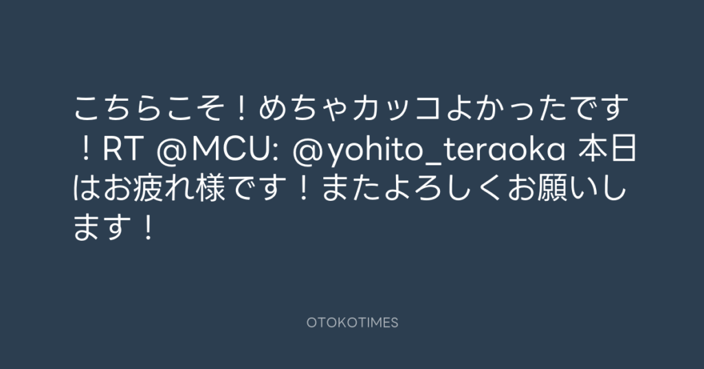 こちらこそ!めちゃカッコよかったです!RT @MCU: @yohito_teraoka 本日はお疲れ様... -