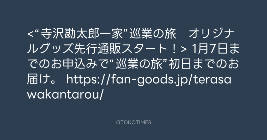 <“寺沢勘太郎一家”巡業の旅 オリジナルグッズ先行通販スタート!> 1月7日ま... -